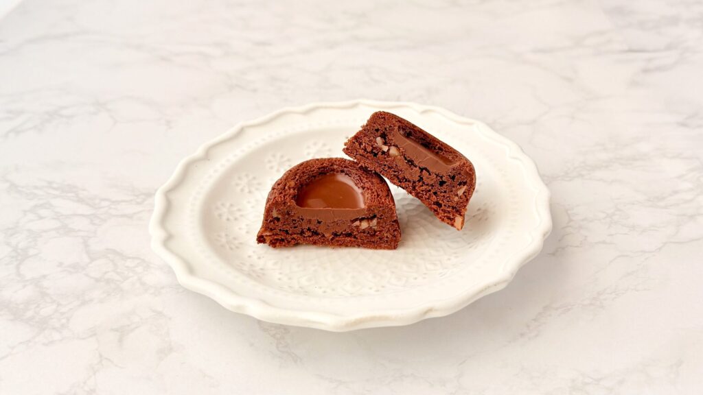 しっとりとしたバターのコクに、チョコレートの甘さがふわっと広がる味わいです。流し込まれたチョコレートはしっとりとした濃密な口当たりで口溶けもよく、甘さ自体は控えめでした。